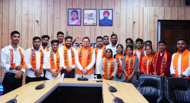 देहरादून: मंगलवार को अखिल भारतीय विद्यार्थी परिषद (एबीवीपी) के देहरादून जनपद के विभिन्न महाविद्यालयों से विजयी प्रत्याशी मुख्यमंत्री पुष्कर सिंह धामी से मुख्यमंत्री आवास में मिले। मुख्यमंत्री ने सभी विजयी प्रतिनिधियों को शुभकामनाएं देते हुए कहा कि युवा ही देश और राज्य की प्रगति की असली शक्ति हैं और उनकी सक्रिय भागीदारी से समाज में सकारात्मक बदलाव लाया जा सकता है।
