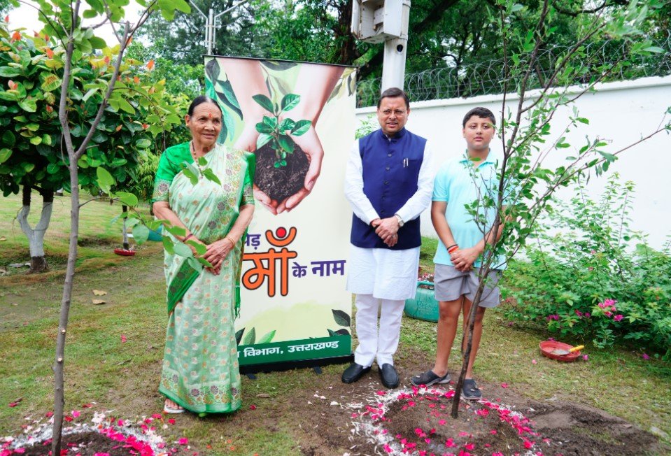 देहरादून: मुख्यमंत्री पुष्कर सिंह धामी ने शनिवार को एक पेड़ मां के नाम अभियान के तहत अपनी माताजी श्रीमती बिशना देवी के साथ पौधारोपण किया। मुख्यमंत्री के सुपुत्र दिवाकर ने भी इस अवसर पर पौधा लगाया। इस पहल का उद्देश्य प्रत्येक व्यक्ति को अपनी माँ के सम्मान में एक पेड़ लगाने के लिए प्रेरित करना है, ताकि भावनात्मक जुड़ाव के माध्यम से पर्यावरण संरक्षण को जन-आंदोलन बनाया जा सके।