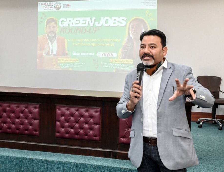 देहरादून: ग्राफिक एरा डीम्ड यूनिवर्सिटी में छात्रों को सतत रोजगार अवसरों, ग्रीन कैरियर और भविष्य की आवश्यक स्किल्स से जोड़ने के उद्देश्य से ग्रीन जॉब्स विषय पर एक विशेष सत्र का आयोजन किया गया।