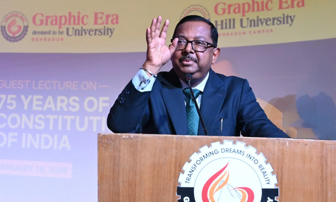 न्यायमूर्ति भूयान आज ग्राफिक एरा हिल यूनिवर्सिटी में भारतीय संविधान के 75 वर्ष विषय पर आयोजित विशेष कार्यक्रम को मुख्य अतिथि के रूप में संबोधित कर रहे थे। न्यायमूर्ति भूयान ने भारतीय संविधान की भूमिका और उसकी जीवंत व प्रगतिशील प्रकृति को रेखांकित किया। उन्होंने कहा कि भारतीय संविधान ने सामाजिक रूप से वंचित वर्ग के लोगों को समाज की मुख्यधारा में स्थान दिलाकर उन्हें सम्मान, पहचान और अधिकार प्रदान किए हैं तथा नि:शब्दों को आवाज दी है। उन्होंने यह स्पष्ट किया कि संविधान कोई जड़ दस्तावेज नहीं, बल्कि एक सतत् चलने वाली प्रक्रिया है, जिसकी आत्मा की रक्षा के लिए समाज और संस्थाओं को सदैव सजग व जागरूक रहना होगा।