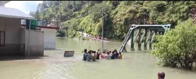 उत्तरकाशी: यमुनोत्री घाटी का स्यानाचट्टी कस्बा शुक्रवार को जल प्रलय का मंजर बन गया। गढग़ाड़ से आए भारी मलबे और बोल्डरों ने यमुना नदी का प्रवाह रोक दिया, जिससे नदी का पानी कस्बे में घुस गया। देखते ही देखते मकान, दुकानें, होटल और स्कूल तक पानी में समा गए। यमुनोत्री हाइवे का मोटर पुल भी जलमग्न हो गया, जिससे आवाजाही पूरी तरह ठप हो गई।