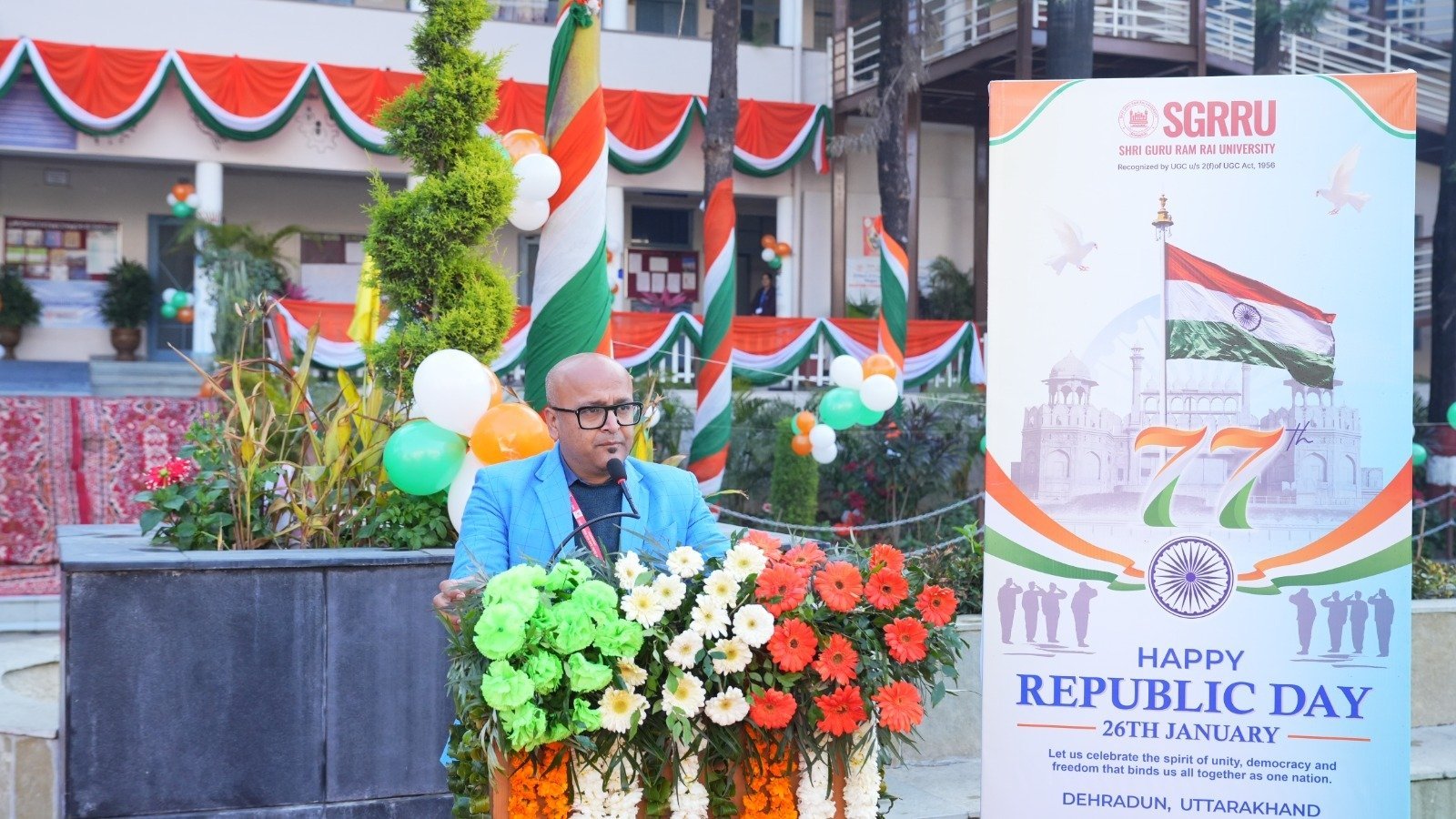 देहरादून: श्री गुरु राम राय विश्वविद्यालय (एसजीआरआरयू) सहित एसजीआरआर समूह के समस्त संस्थानों में देशभक्ति, राष्ट्र गौरव और भारतीय संविधान के प्रति आस्था का भव्य उत्सव देखने को मिला। दरबार श्री गुरु राम राय जी महाराज, एसजीआरआर विश्वविद्यालय एवं एसजीआरआर समूह के अन्य शिक्षण संस्थानों में राष्ट्रीय ध्वज पूरे सम्मान, आन-बान और शान के साथ फहराया गया।