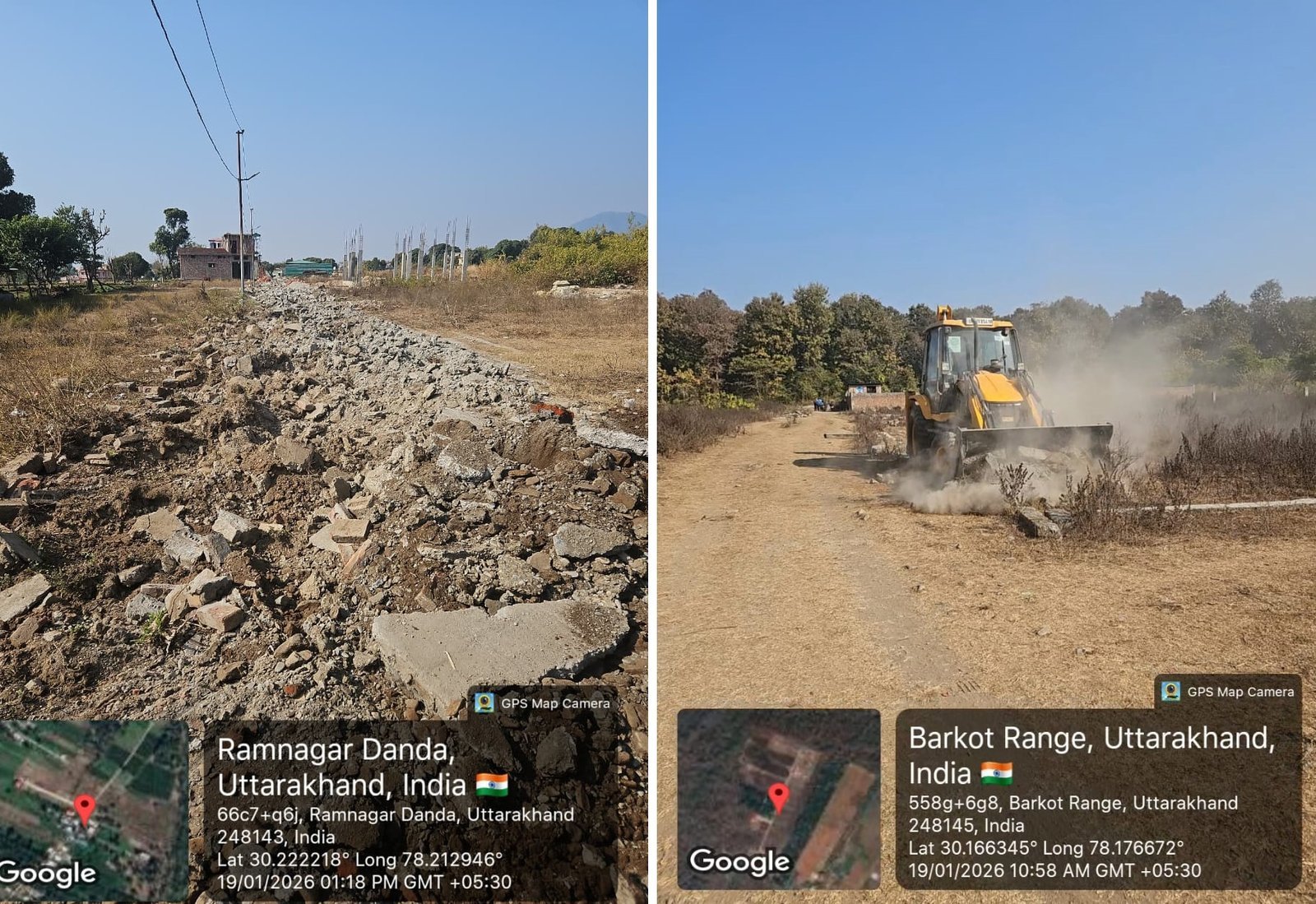प्राधिकरण की टीम द्वारा घमंडपुर, रानीपोखरी, देहरादून क्षेत्र में दिनेश सजवाण, अवतार सिंह एवं राजेन्द्र सिंह कैंतुरा द्वारा लगभग 15 से 20 बीघा भूमि में की जा रही अवैध प्लॉटिंग पर ध्वस्तीकरण की कार्रवाई की गई। मौके पर बिना किसी वैधानिक अनुमति के आंतरिक सड़कों का निर्माण, भू-खण्डों का सीमांकन तथा कॉलोनी विकसित करने की तैयारी की जा रही थी। कार्रवाई के दौरान अवैध रूप से निर्मित सड़कों, पिलरों, सीमांकन एवं अन्य अस्थायी संरचनाओं को ध्वस्त किया गया।