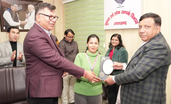प्रतियोगिता के विजयी प्रतिभागियों को महानिदेशक सूचना बंशीधर तिवारी द्वारा पुरस्कार प्रदान किये गये।